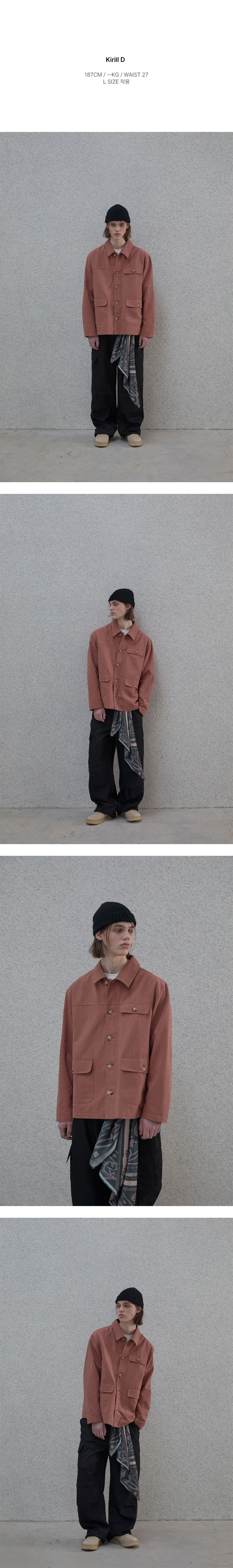 오버핏 캔버스 포켓 패치 워크 셔츠 [카키]
