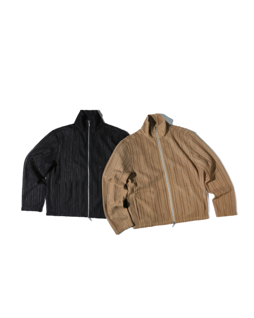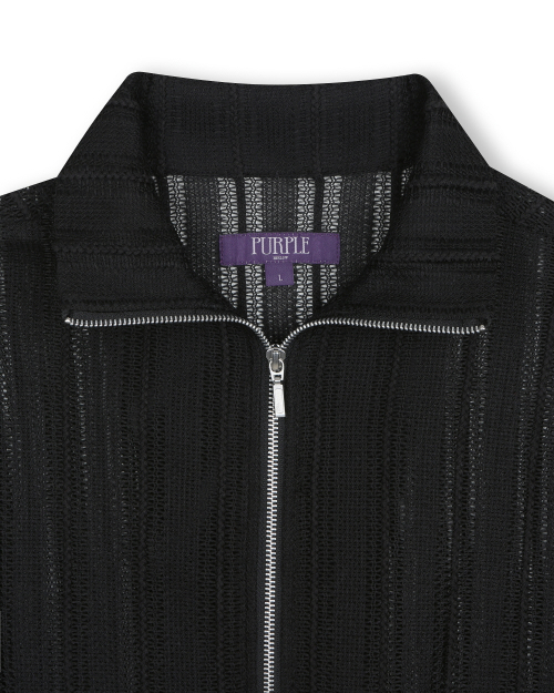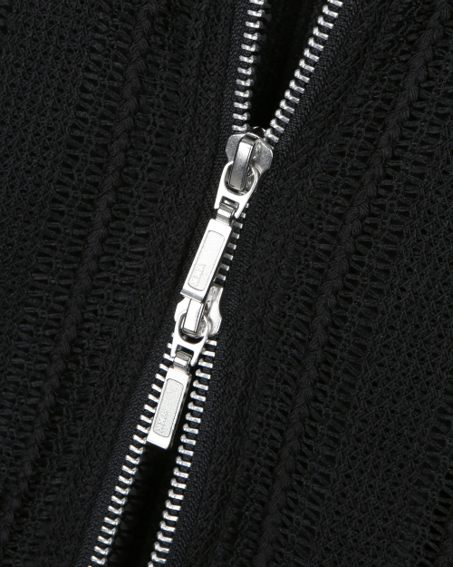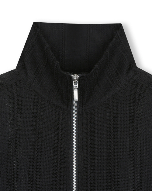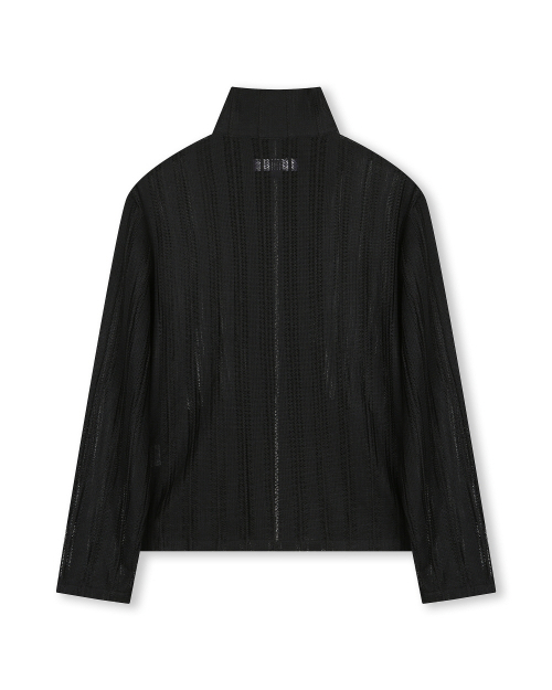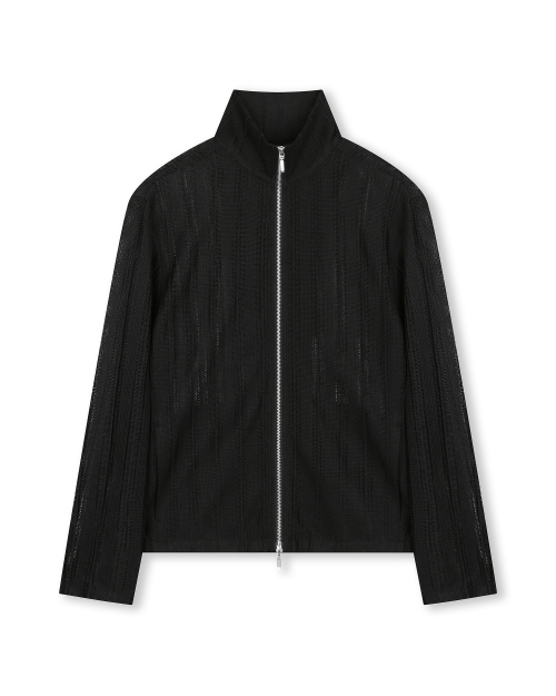 SEE-THROUGH JACQUARD HIGH NECK ZIP-UP BLACK