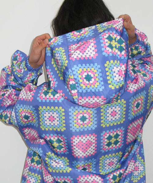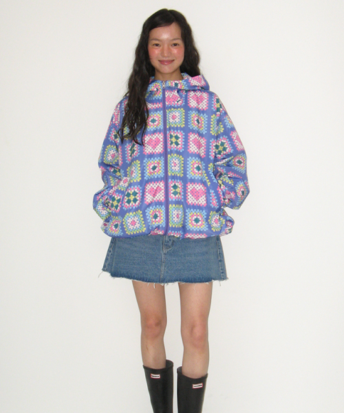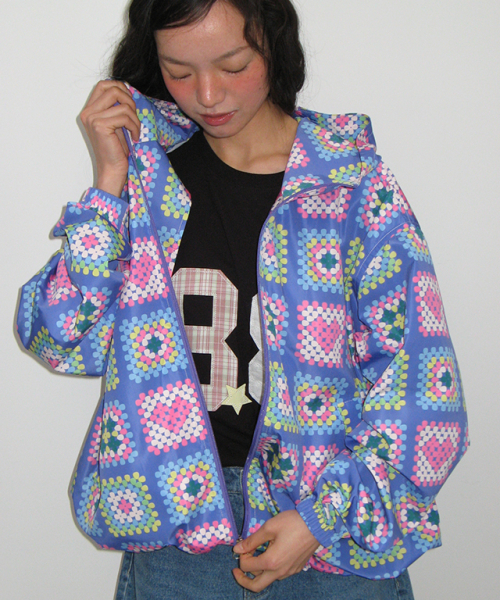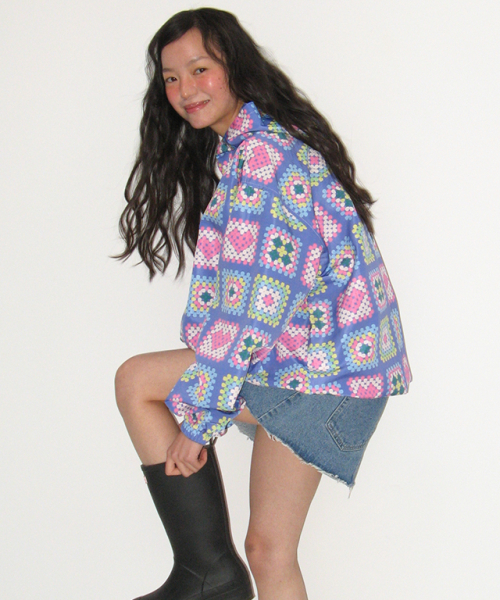 HEART CROCHET PATTERN HOODED WINDBREAKER JUMPER LIGHT PURPLE