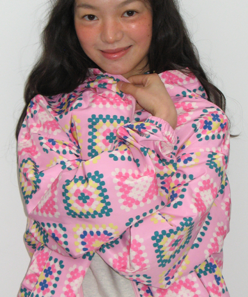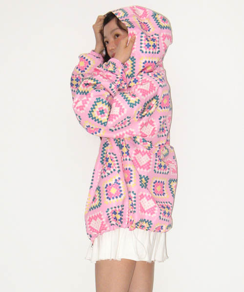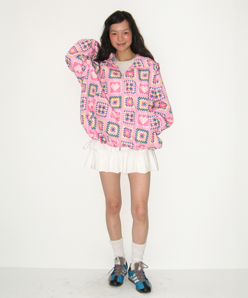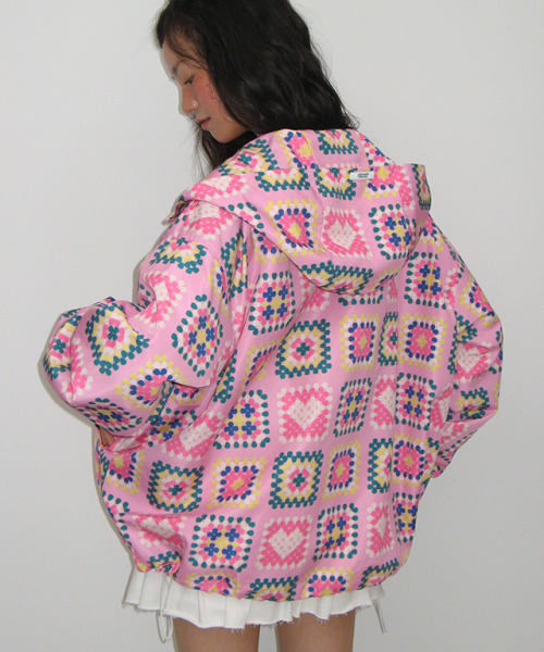 HEART CROCHET PATTERN HOODED WINDBREAKER JUMPER PINK