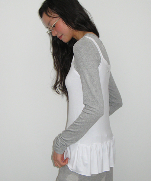 PENDANT RUFFLE LAYERED SLIM SLEEVELESS WHITE