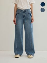 세미 와이드 워싱 데님 팬츠 스카이블루 (324721LPHQ)