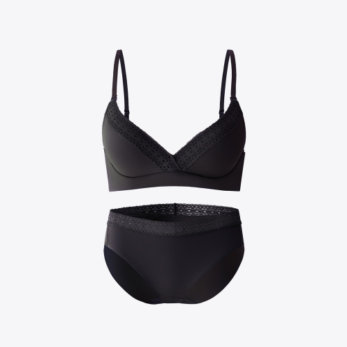 소폭레이스 노와이어 브라 프리컷 팬티 세트_다크그레이