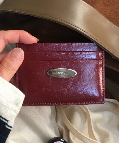 EMBOSSED LOGO CARD WALLET IN BURGUNDY