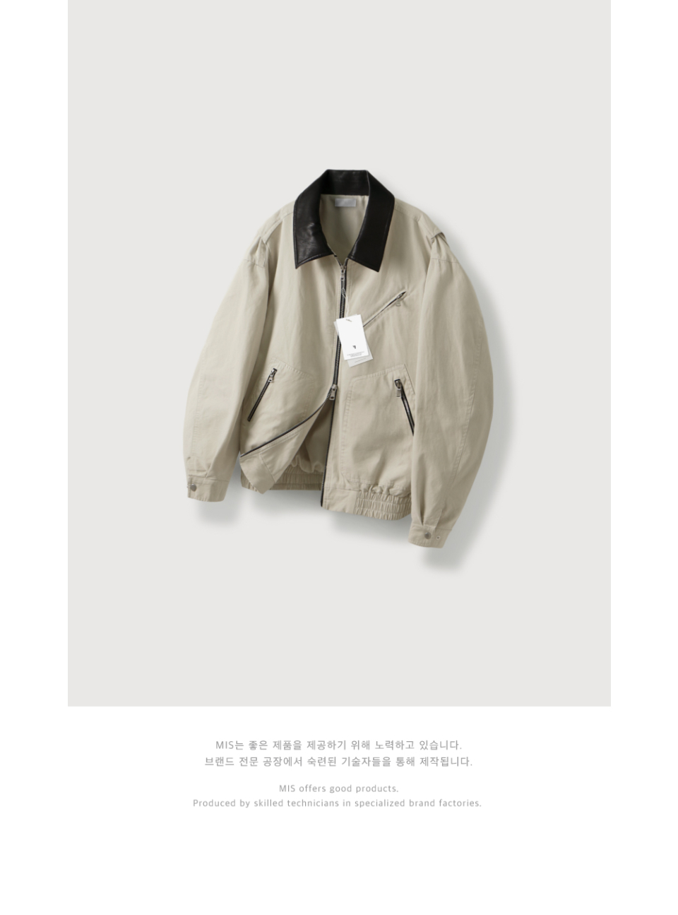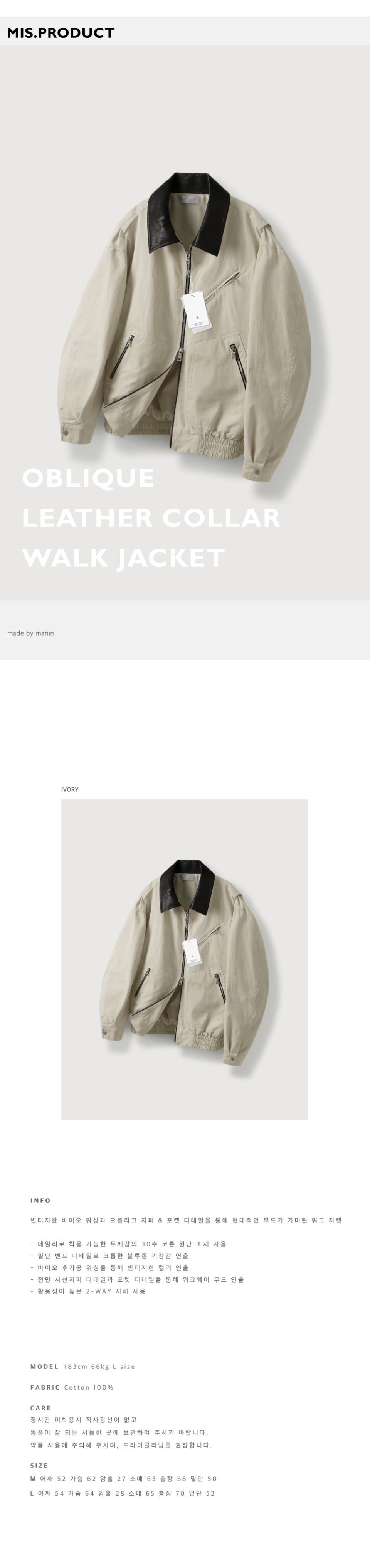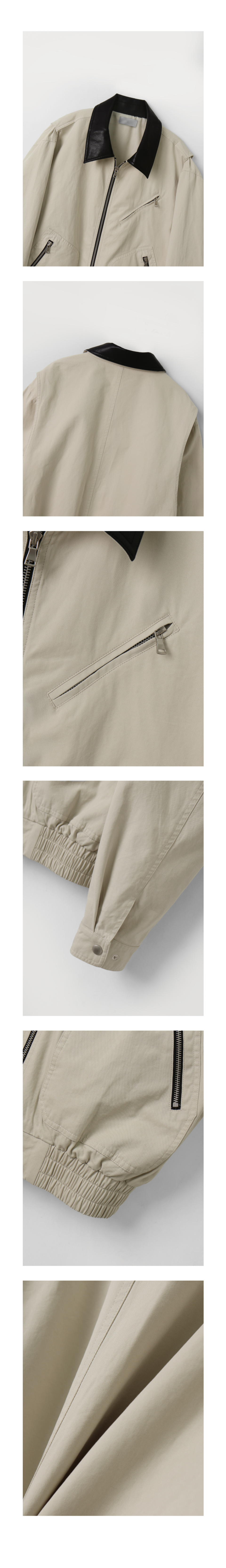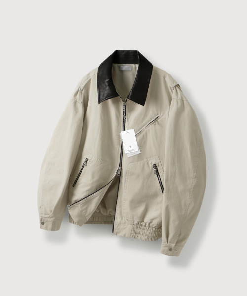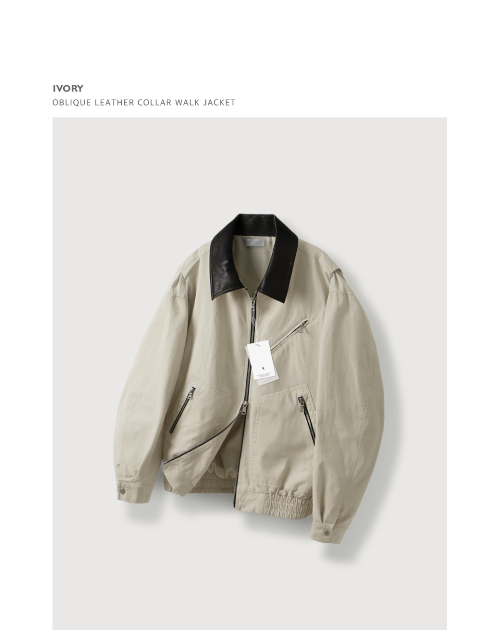 오블리크 레더 카라 워크 자켓_Ivory