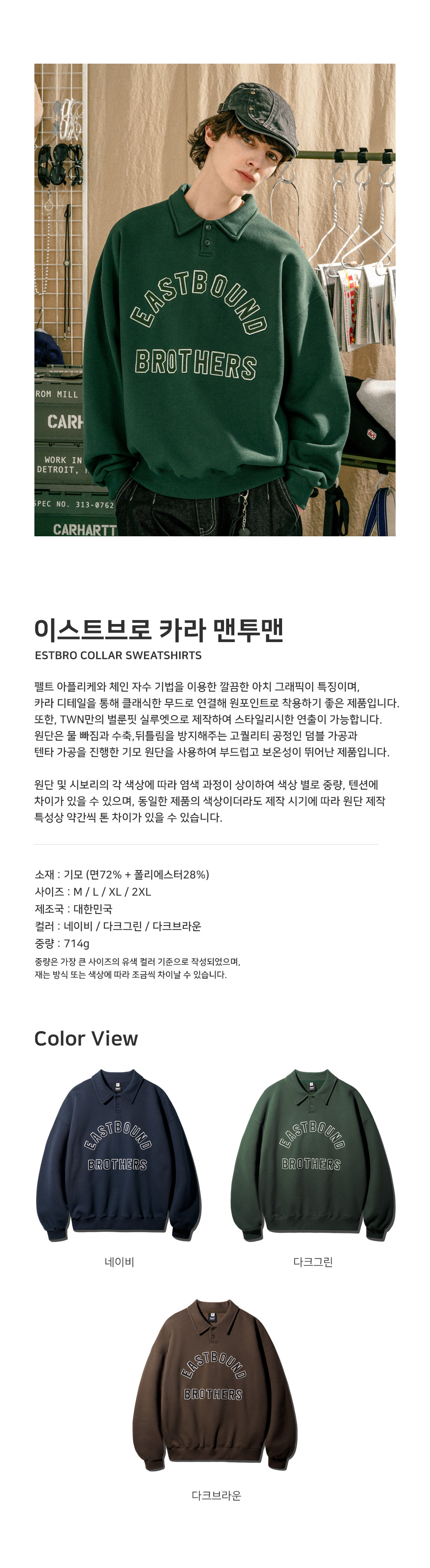 이스트브로 카라 맨투맨 다크그린 JYMT3610