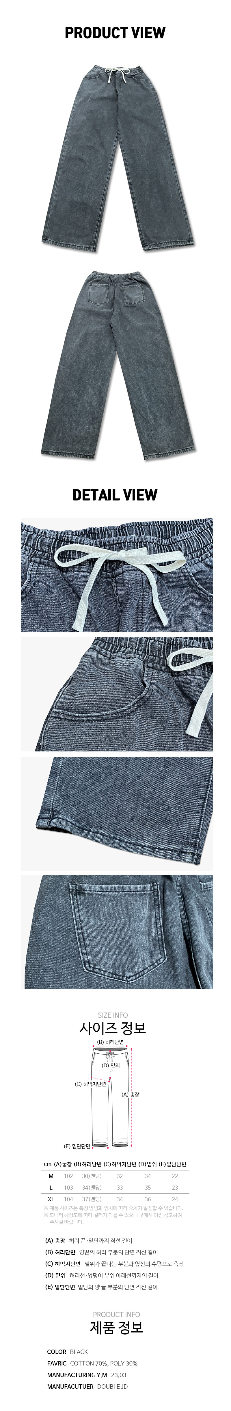 세미와이드 밴딩 데님 팬츠 (블랙)