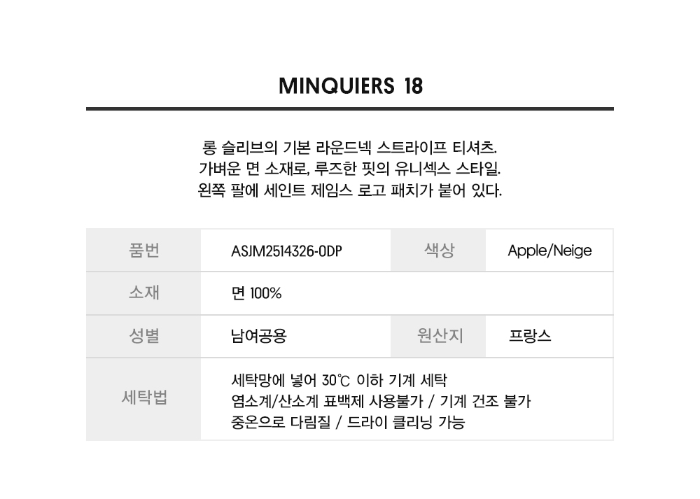 세인트제임스(SAINT JAMES)는 1889년 프랑스 노르망디 몽생미셸만 근처 세인트제임스 지역에서 시작되었습니다. 직접 만들고 염색한 털실 판매를 시작으로, 직접 만든 울로 레옹 지방 어부들을 위한 셔츠를 공급하며 1929년 회사를 설립하였고, 이후 마린 룩의 대명사로 성장하였습니다.