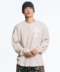 크로스 와플 헨리넥 롱슬리브-크림