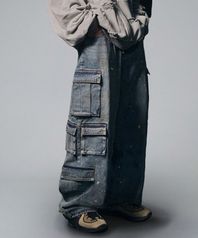 Dirty Wash Multi Cargo Denim Pants - Deep Blue
