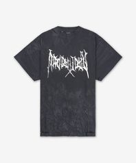 오버사이즈 반소매 티셔츠 - 워시드 블랙:화이트 / 787349TRVF99034