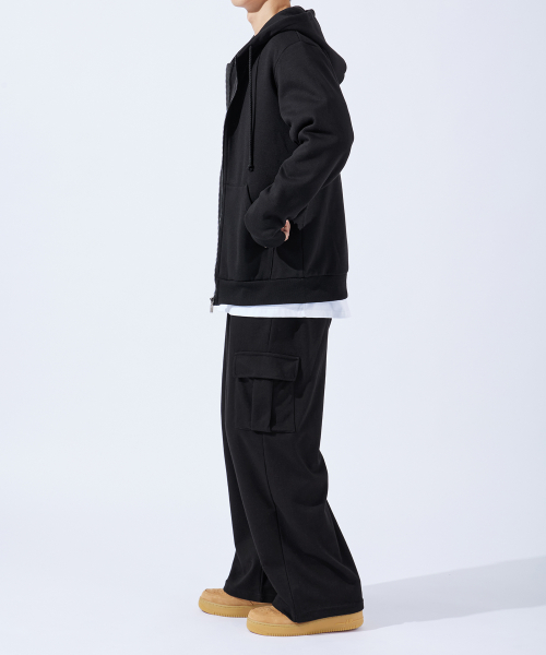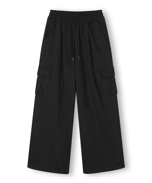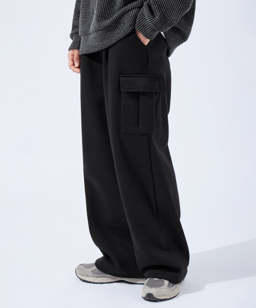 [논기모or기모] 컴포트 카고 원턱 와이드 트레이닝 팬츠 블랙