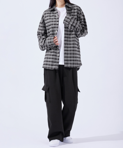 [논기모or기모] 컴포트 카고 원턱 와이드 트레이닝 팬츠 멜란지