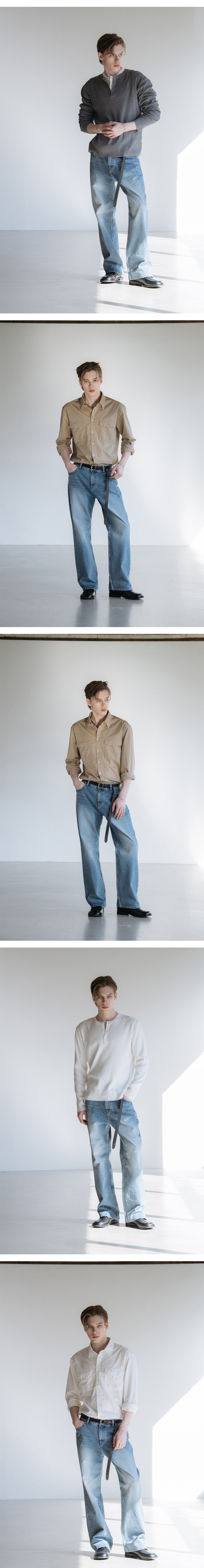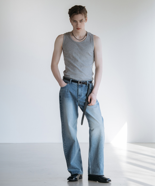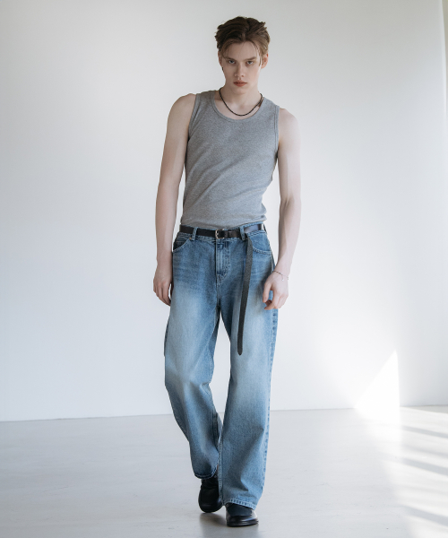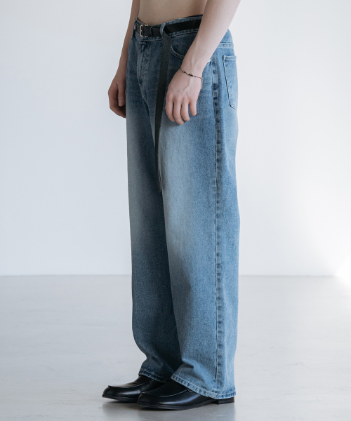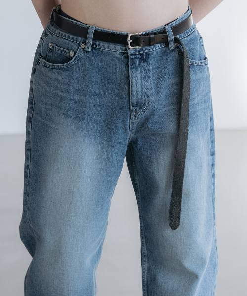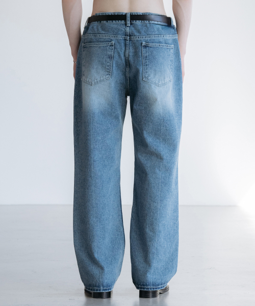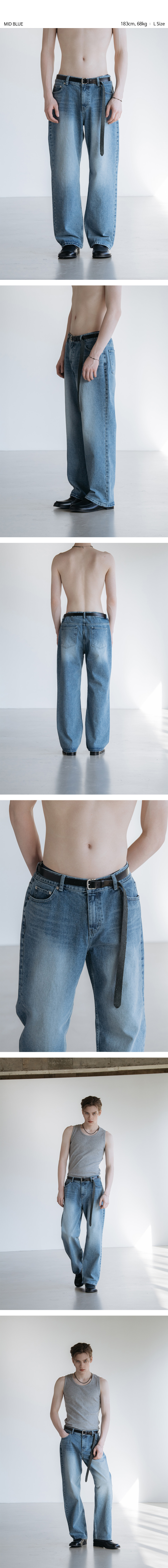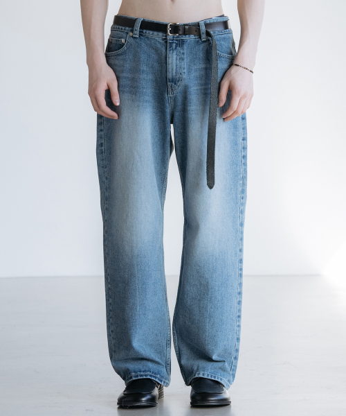 워싱 레귤러 와이드 데님 팬츠 [미드 블루]
