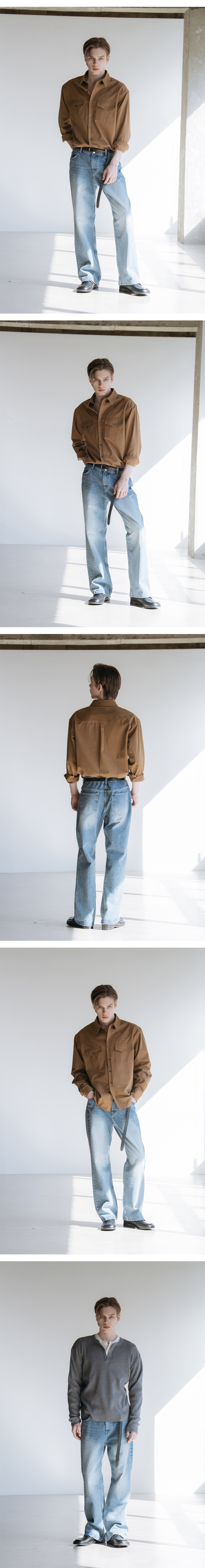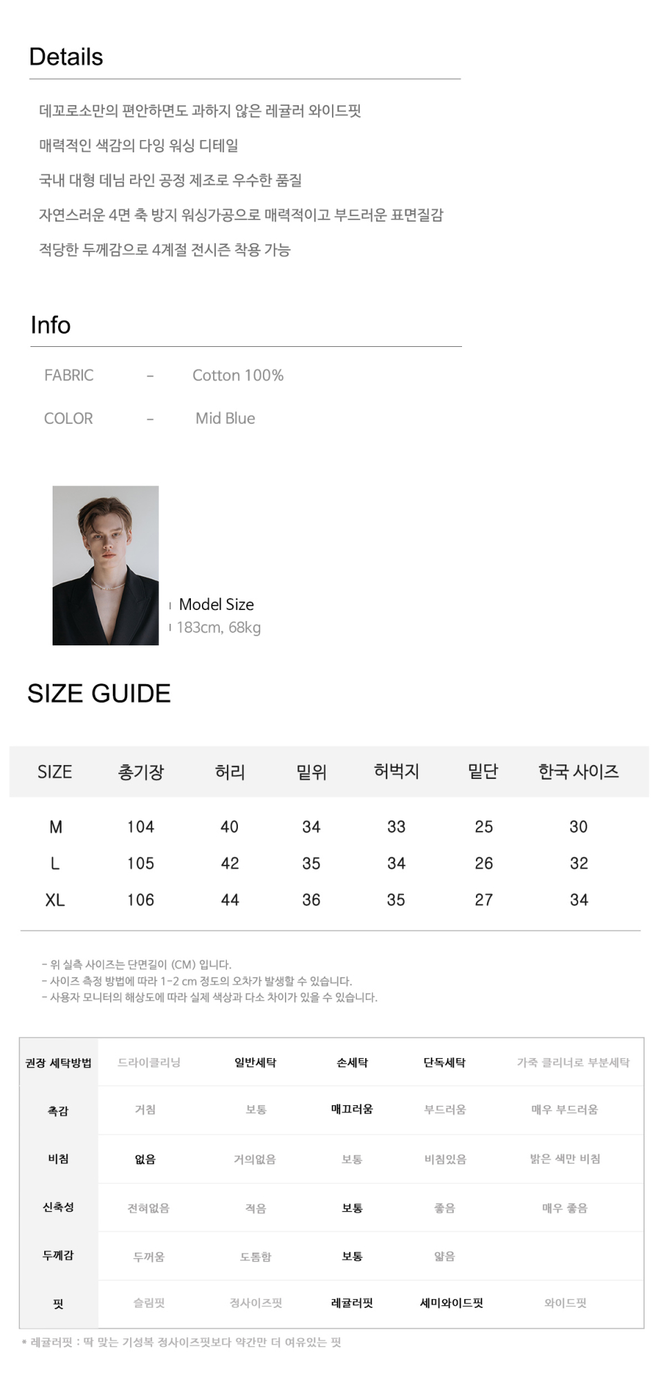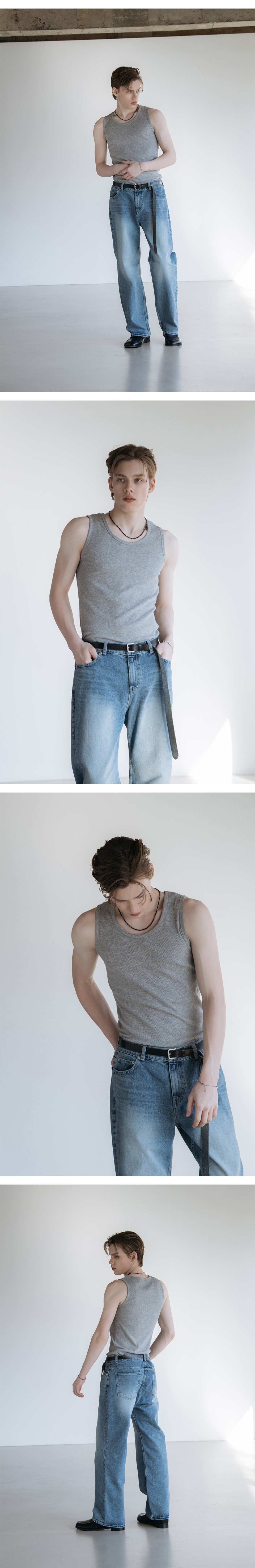 워싱 레귤러 와이드 데님 팬츠 [미드 블루]