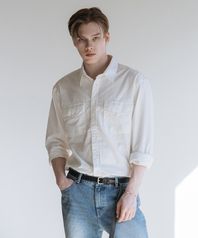 네츄럴 워싱 코튼 투포켓 셔츠 [화이트]
