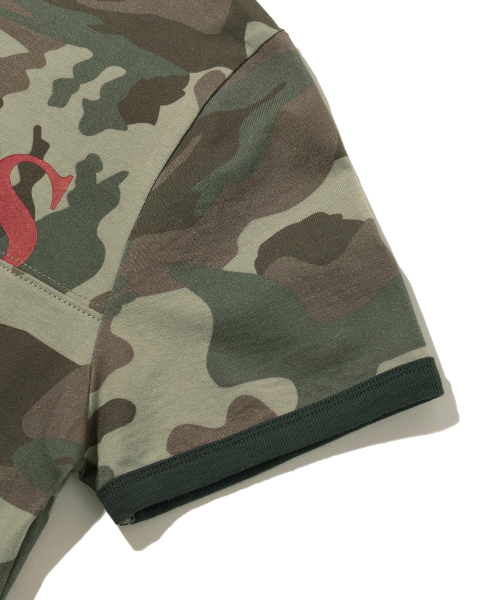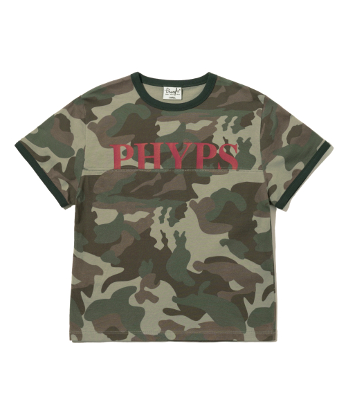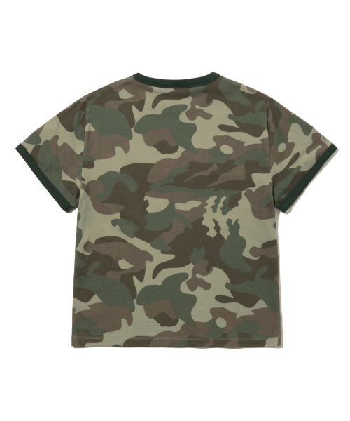 우먼즈 절개 크롭 반팔티셔츠_카모