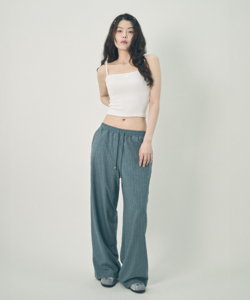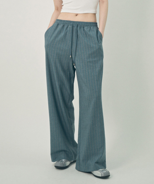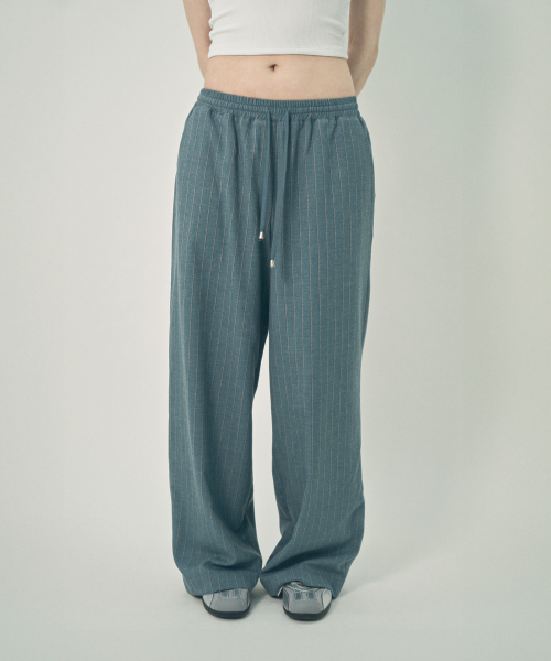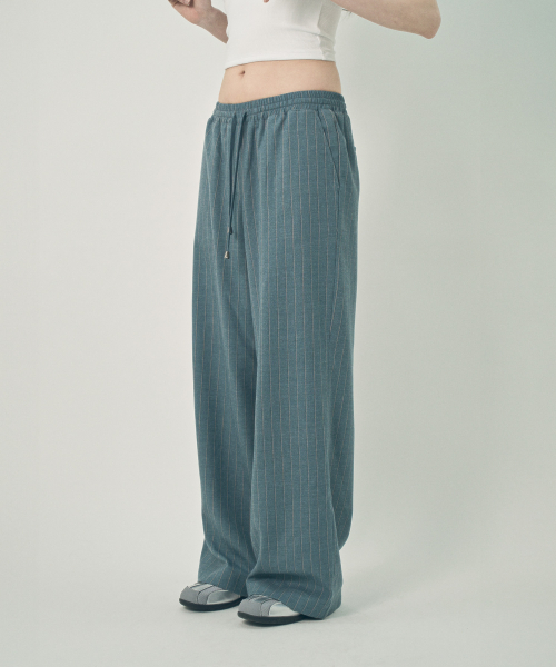 캐주얼 스트라이프 와이드 슬랙스 블루