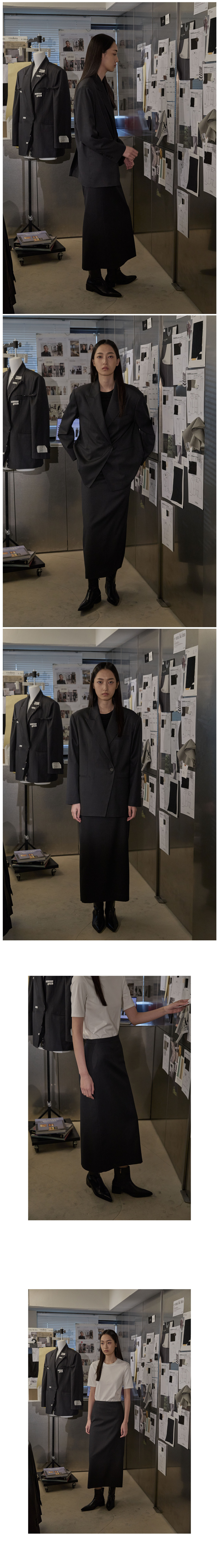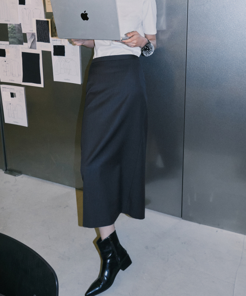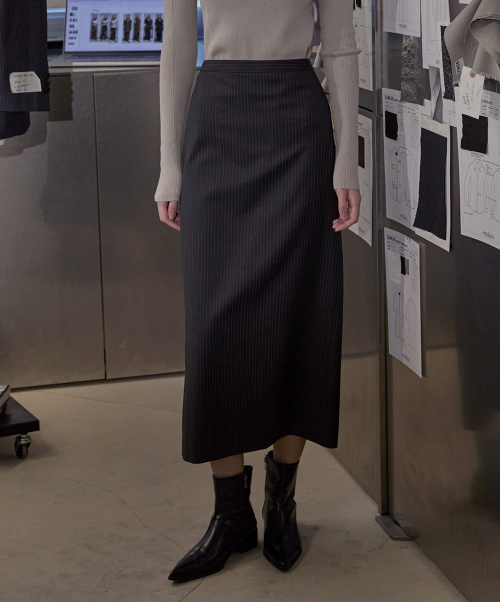 스트라이프 썸머울 롱 스커트_DEEP CHARCOAL