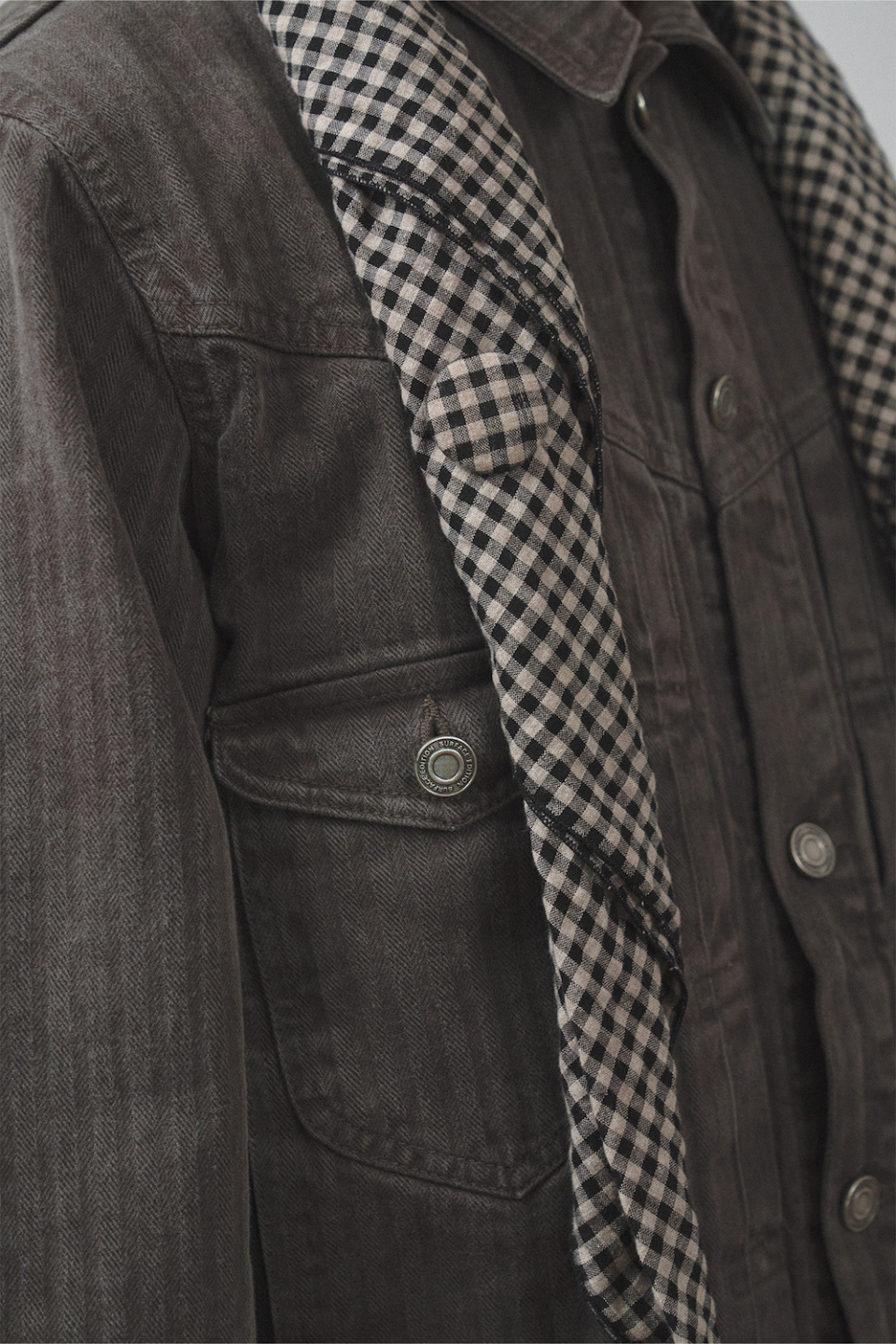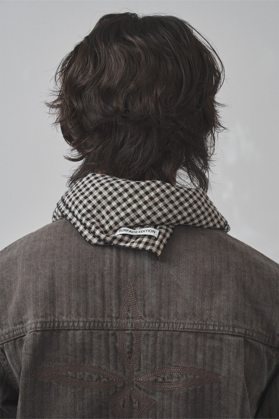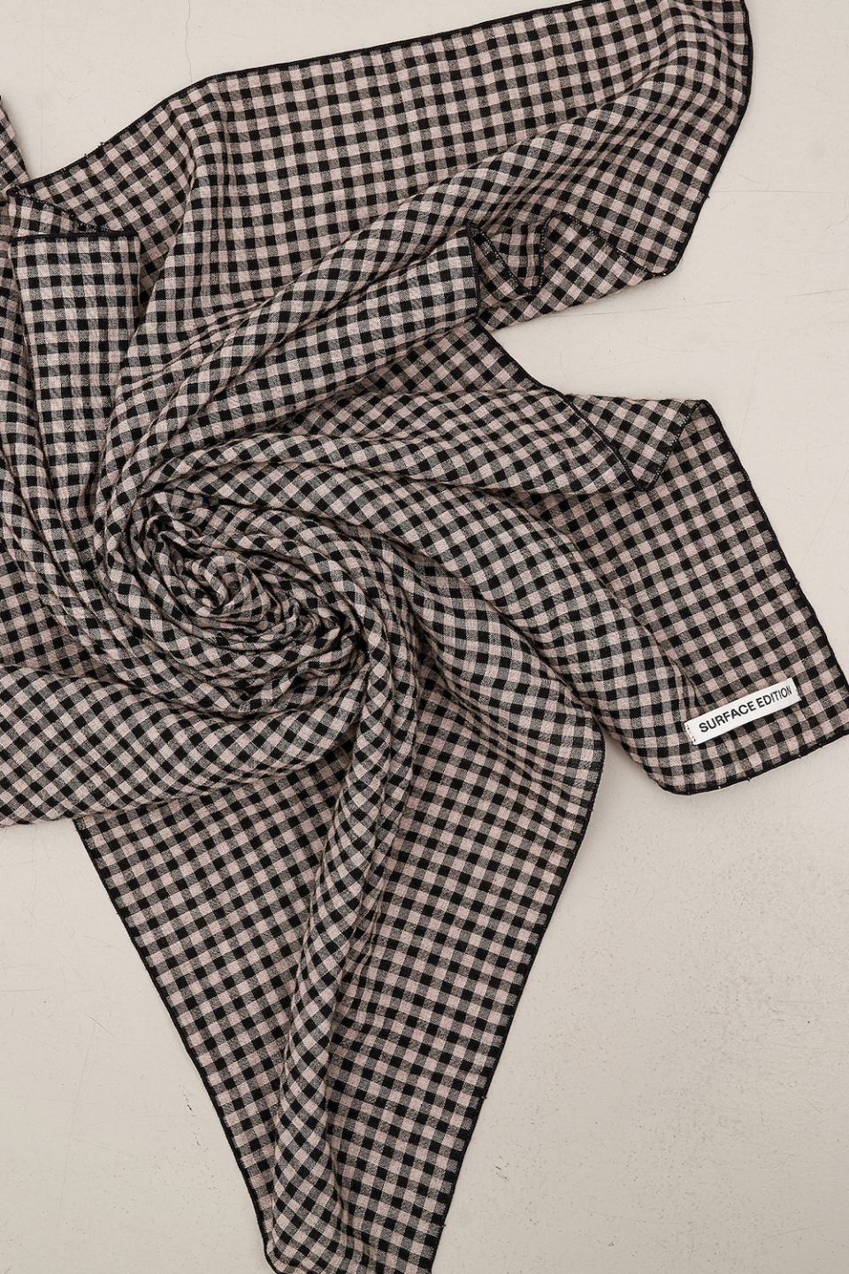 깅엄 체크 원단의 질감이 돋보이는 스카프
