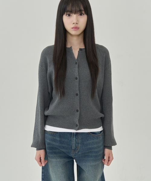 W 이븐 라운드 코튼 가디건 (GREY)