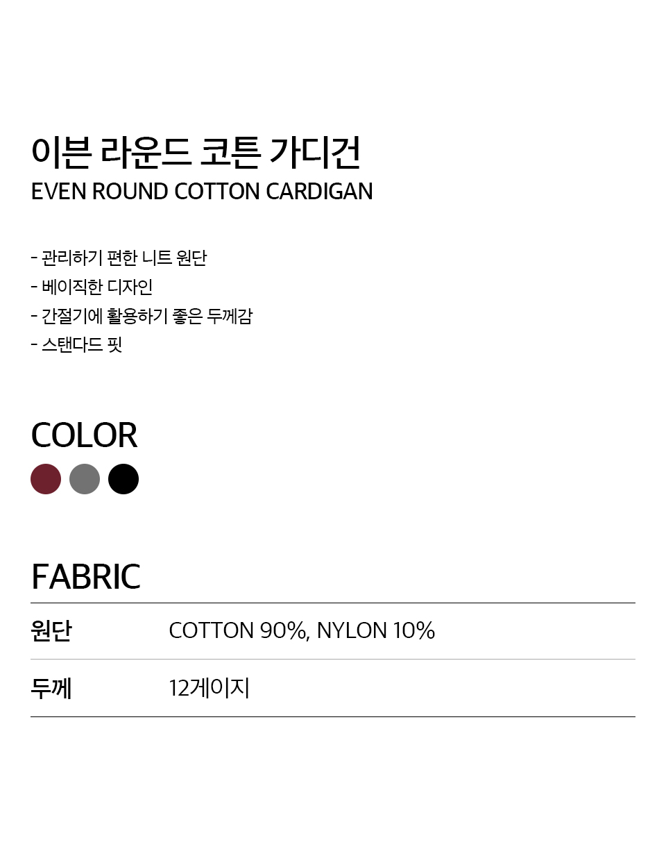 W 이븐 라운드 코튼 가디건 (BLACK)