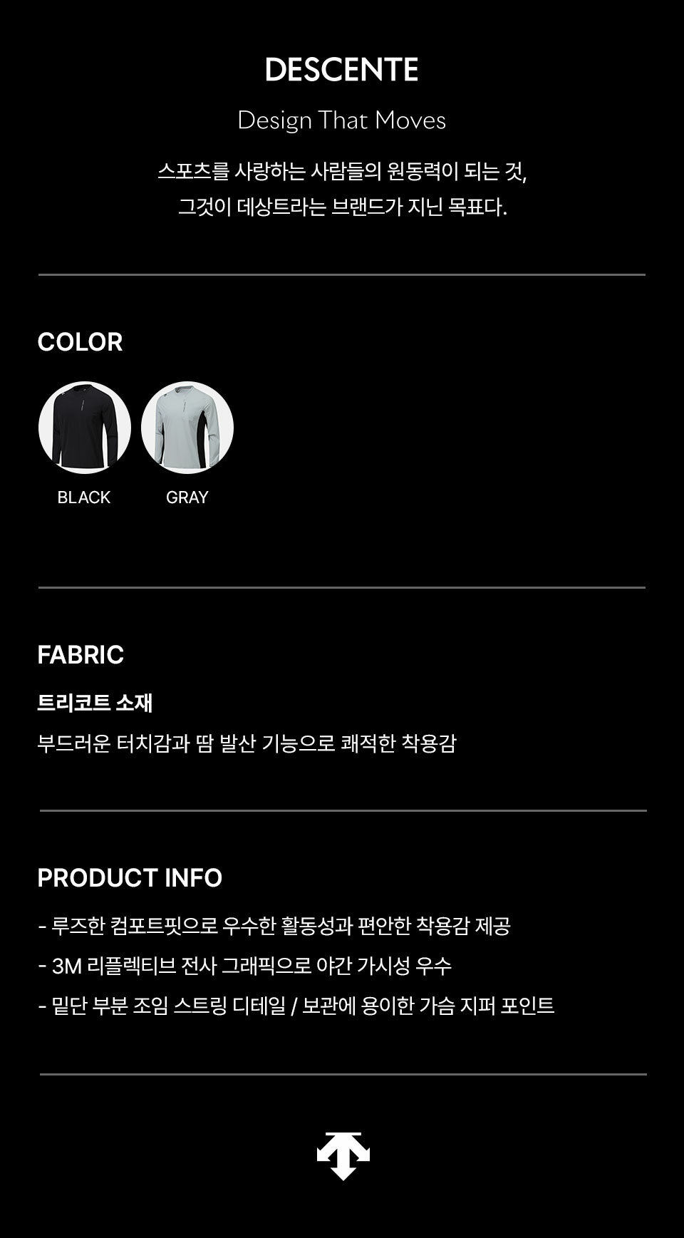 | 소재 | [BLK0]겉감:나일론(79)폴리우레탄(21),[GRY0]겉감1:나일론(79)폴리우레탄(21),[GRY0]겉감2:나일론(79)폴리우레탄(21) (입고 시기에 따라 정보가 상이할 수 있어, 수령하신 상품의 라벨을 참고하시기 바랍니다.) |
