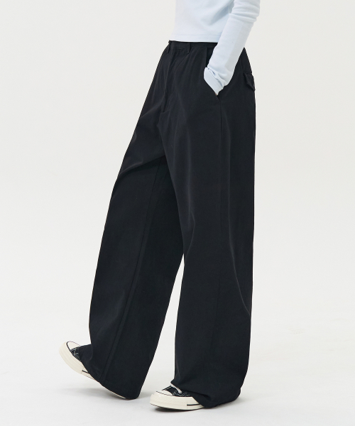 우먼즈 나일론 와이드 스트링 팬츠 [다크 그레이]