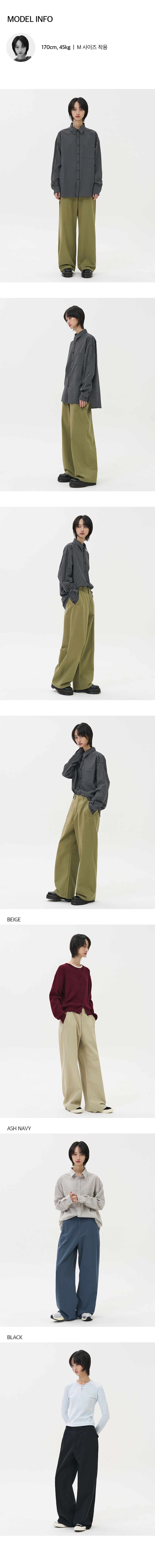 W 더블니 턱 와이드 팬츠 (BEIGE)