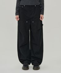 W 코튼 턱 와이드 팬츠 (BLACK)