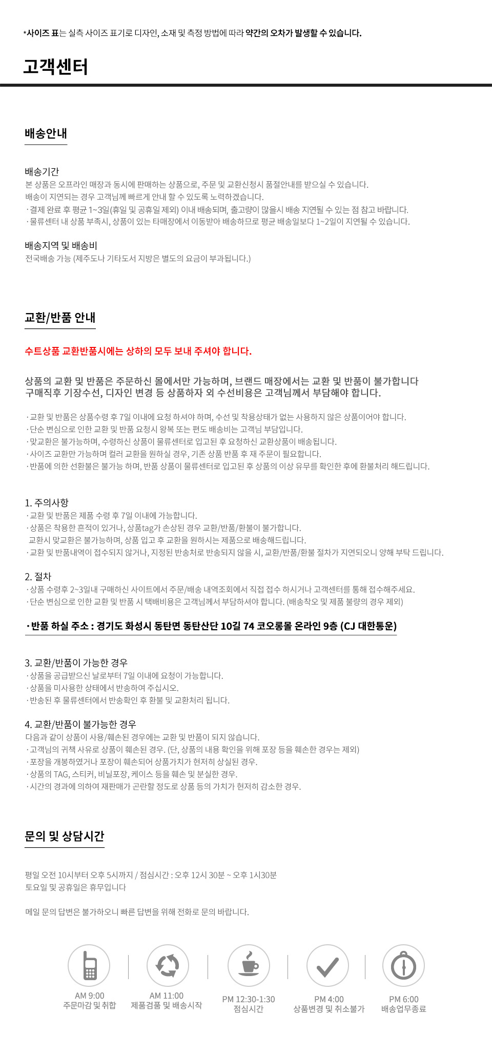 *사이즈는 측정기준에 따라 실제와 약간의 오차가 있을 수 있습니다.