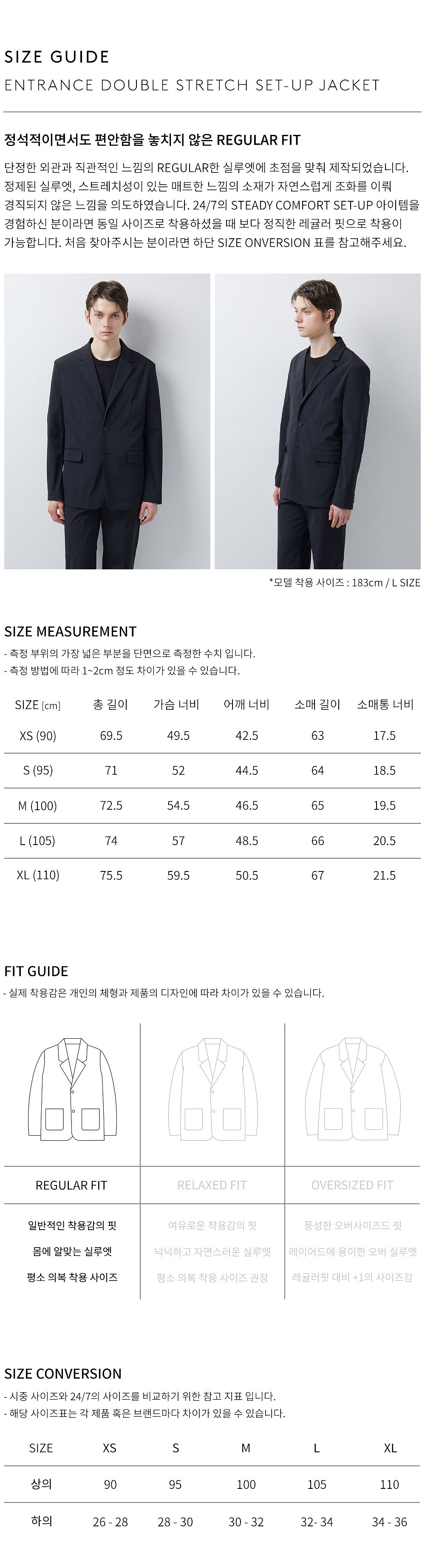 모델 착용 사이즈 : 183cm / L size
