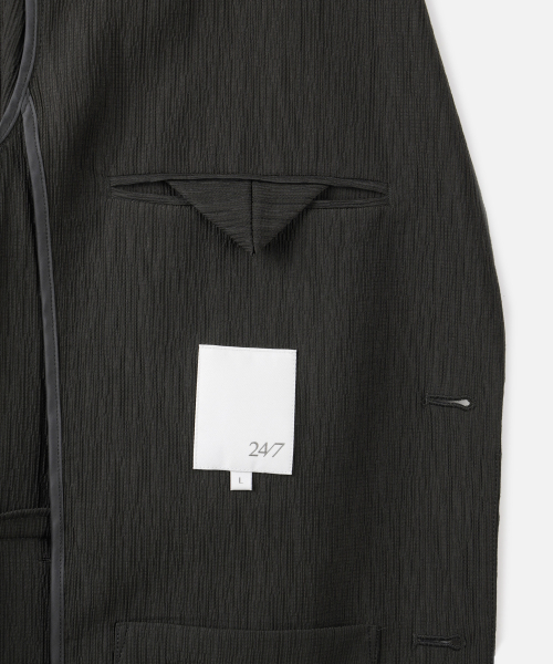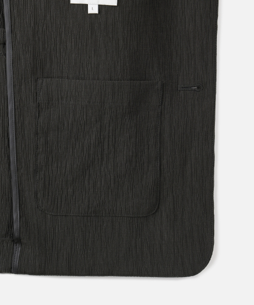 A : 어깨 패드나 무거운 심지를 최소화하여 원단 본연의 가벼움을 살린 설계입니다. 자켓 특유의 정갈한 무드는 유지하면서도 착용감이 한층 유연하고 가벼워 더운 날씨에도 쾌적하게 활용하기 좋습니다.