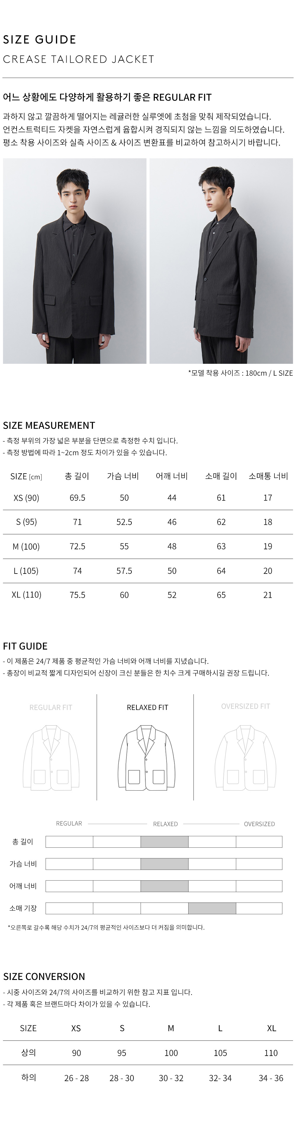 모델 착용 사이즈 : 180cm / L size