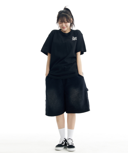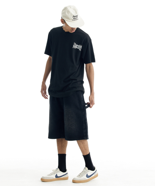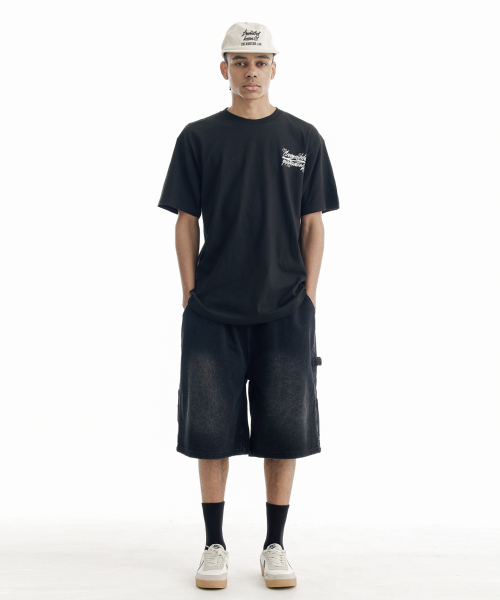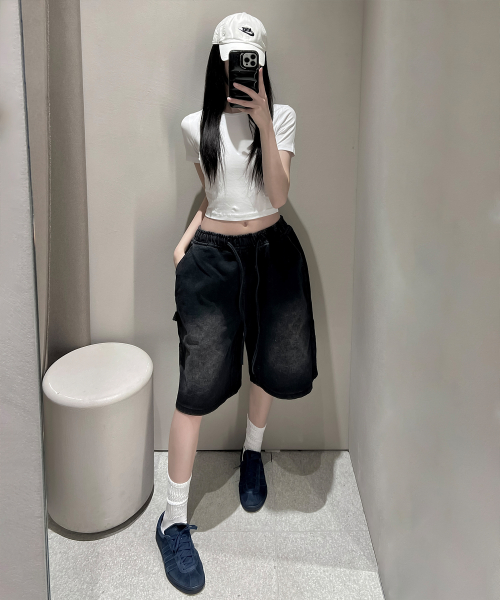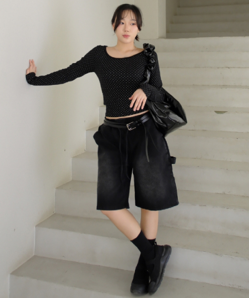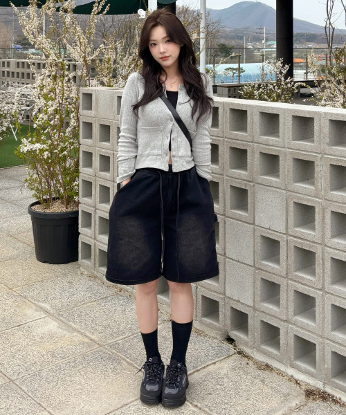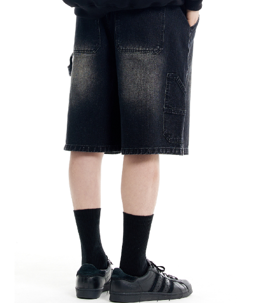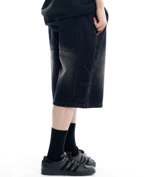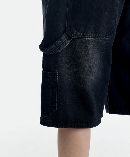 버뮤다 카펜터 숏 데님팬츠 밴딩 딥 블랙