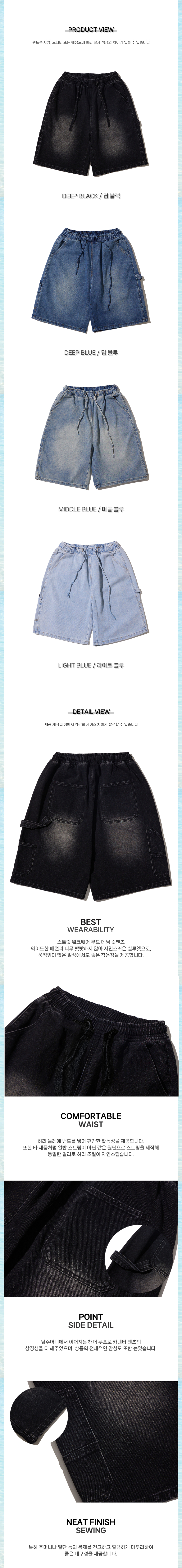 버뮤다 카펜터 숏 데님팬츠 밴딩 딥 블루