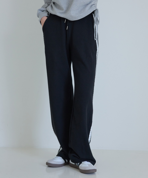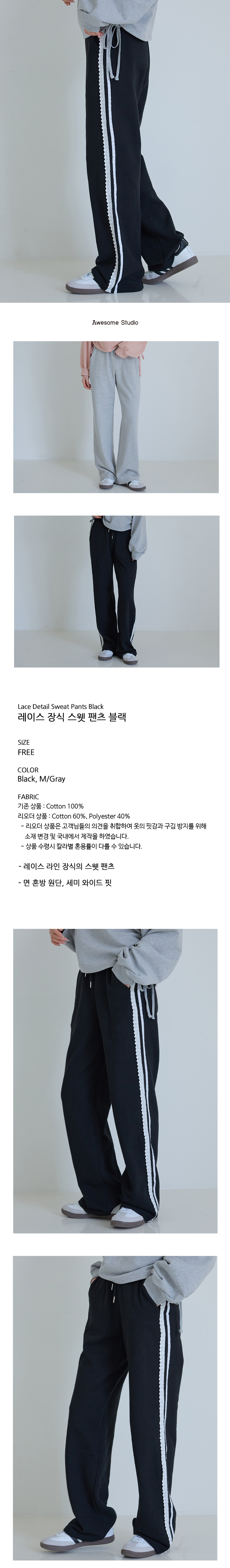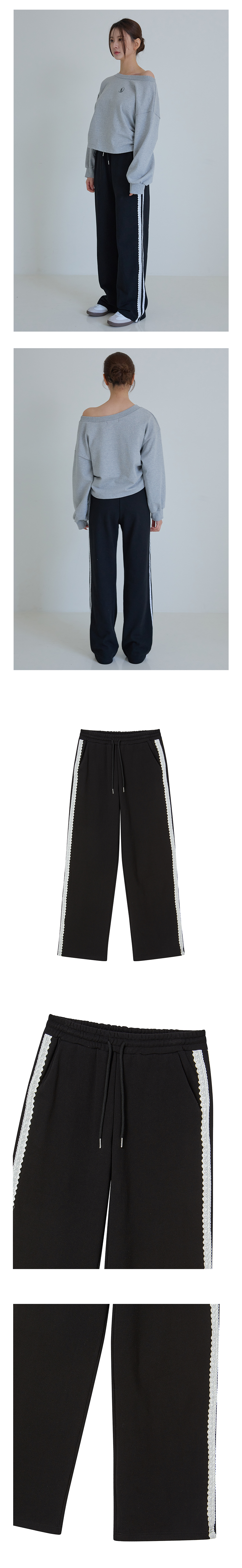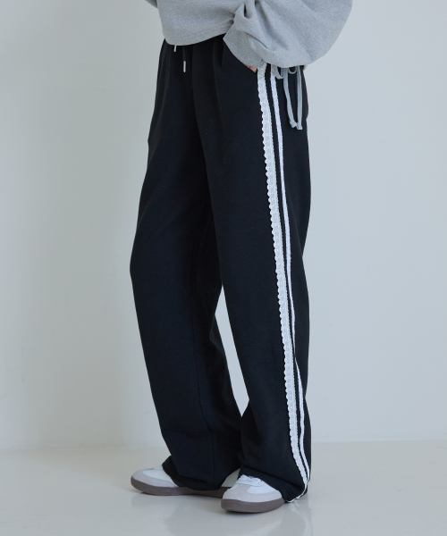 레이스 장식 스웻 팬츠 블랙