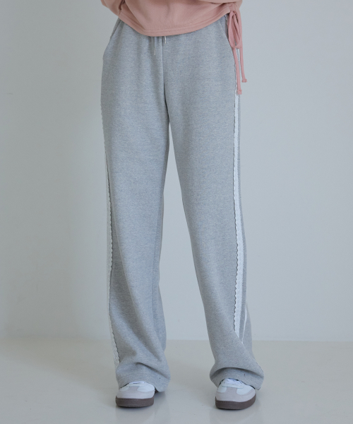 레이스 장식 스웻 팬츠 멜란지그레이