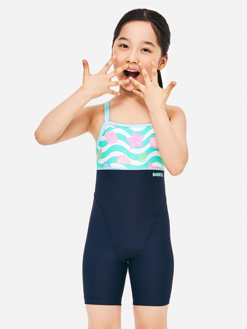 여아 웨이브쉘 Y백 3부 반신 수영복 딥네이비 (B5SKSWH306DNV)