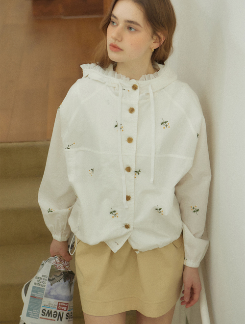 마가렛 엠브로더리 버튼다운 자켓 - 화이트