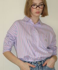 STRIPE STITCH HEART POCKET OVER FIT SHIRT PINK