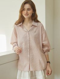 호프 시어서커 스트라이프 셔츠 - 핑크