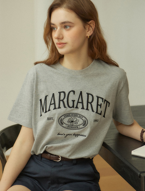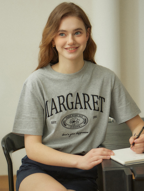 마가렛 엠브로더리 티셔츠 - 멜란지 그레이