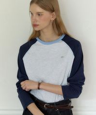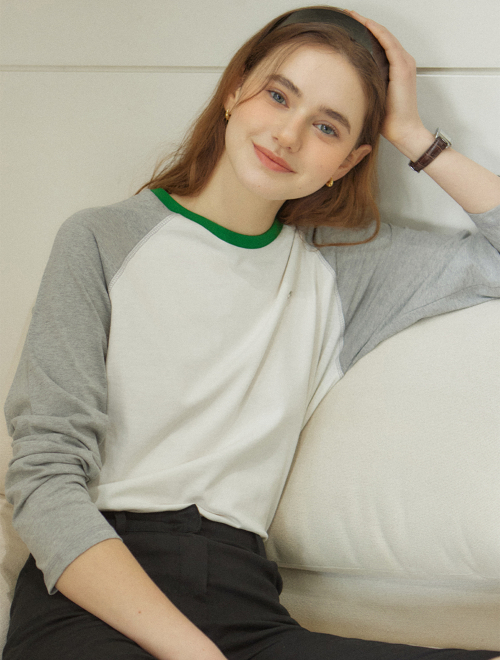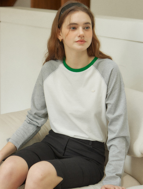 투톤 래글런 티셔츠 - 멜란지 그레이