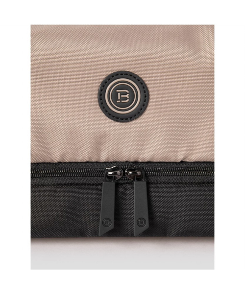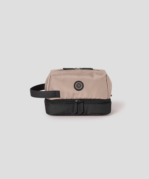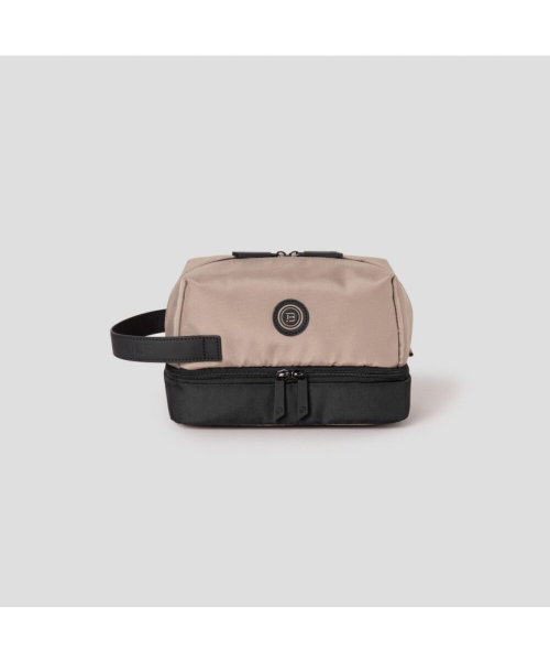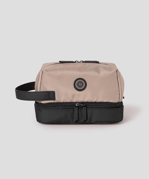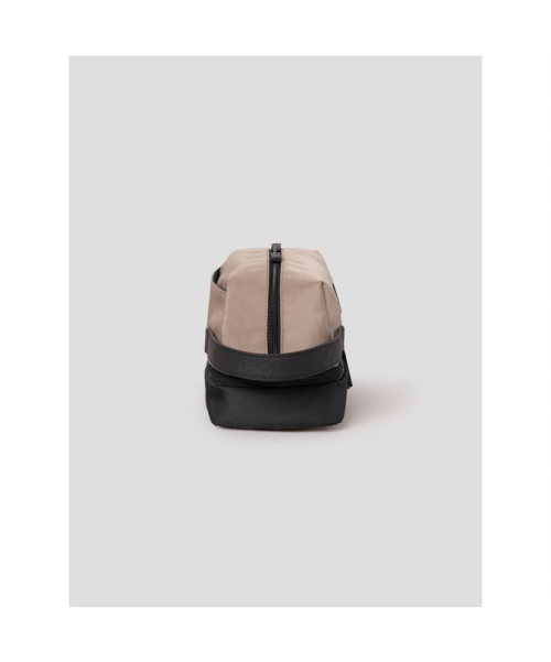 상단과 하단 공간이 분리되어 보관이 편리한 공용 파우치입니다. 내부에는 신축성이 있는 촘촘한 구멍의 메시 소재로 제작된 포켓이 있습니다. 포켓을 이용해 소지품을 쏠리지 않게 보관할 수 있어 실용적입니다.