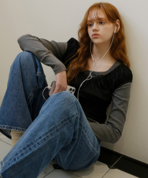 스트라이프 U넥 긴팔 티셔츠_2colors