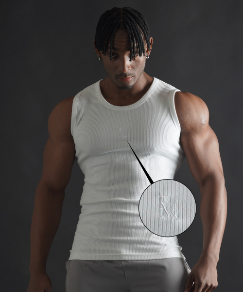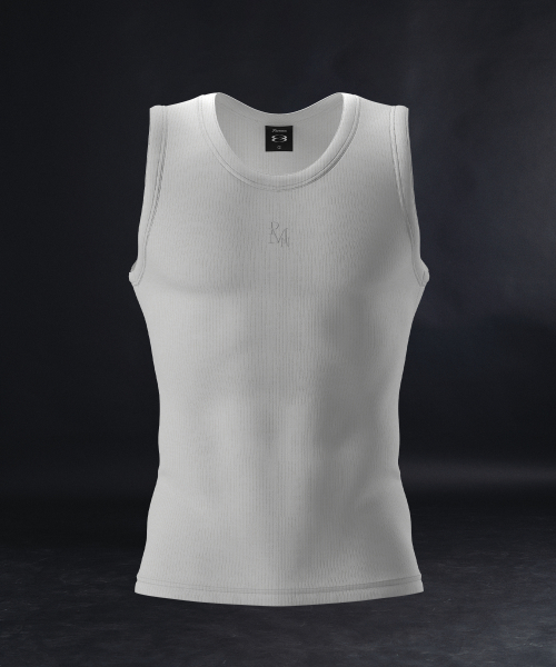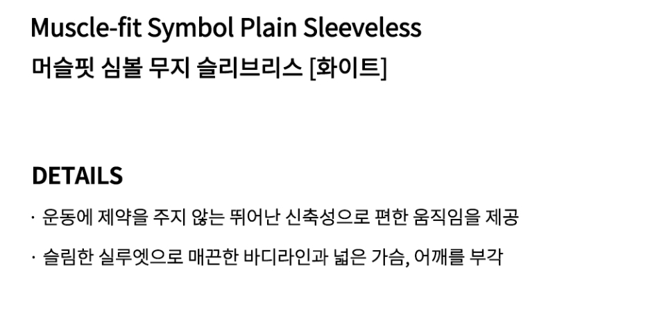 머슬핏 심볼 무지 슬리브리스 - 화이트