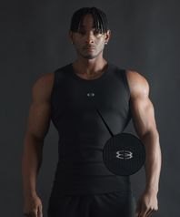 머슬핏 심볼 로고 슬리브리스 - 블랙