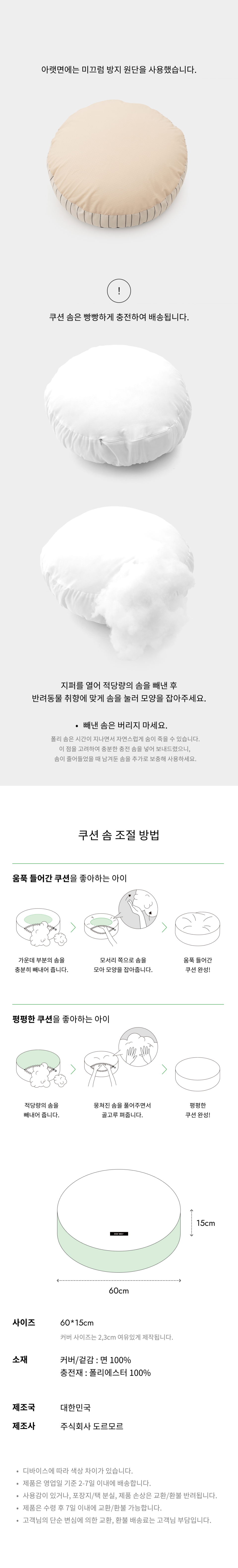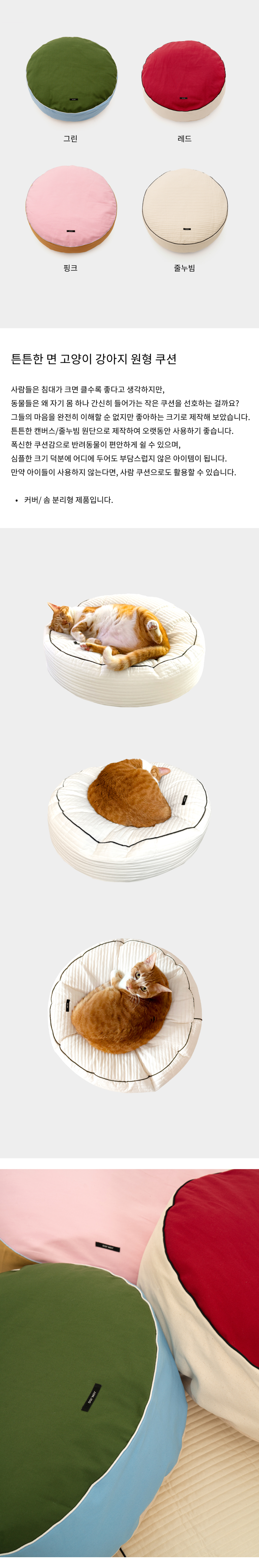 생활방수 패턴 고양이 강아지 원형 쿠션 커버