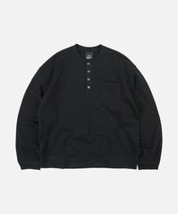 SLUB HENLEY NECK L/S TEE _ BLACK
